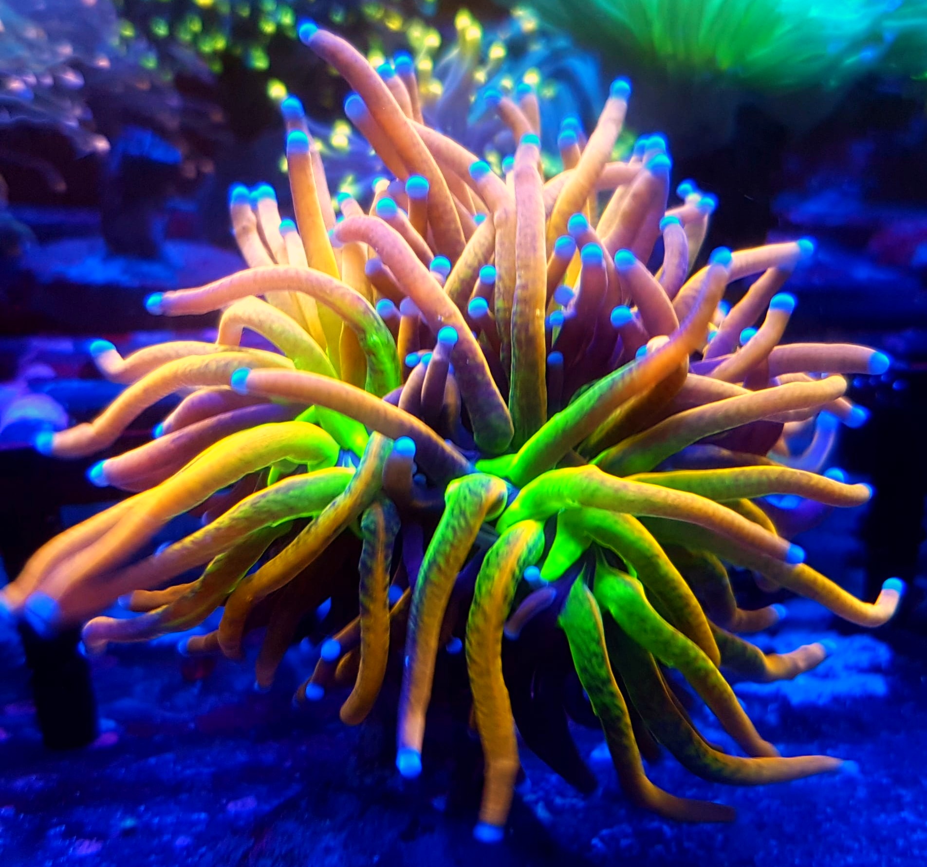 euphyllia glabrescens toxic green euphyllia neon green koralowiec toxic green torch koral LPS premium zielony korale fluorescencyjne akwariowe euphyllia do akwarium rafowego koral akwariowy neon akwarystyka morska premium